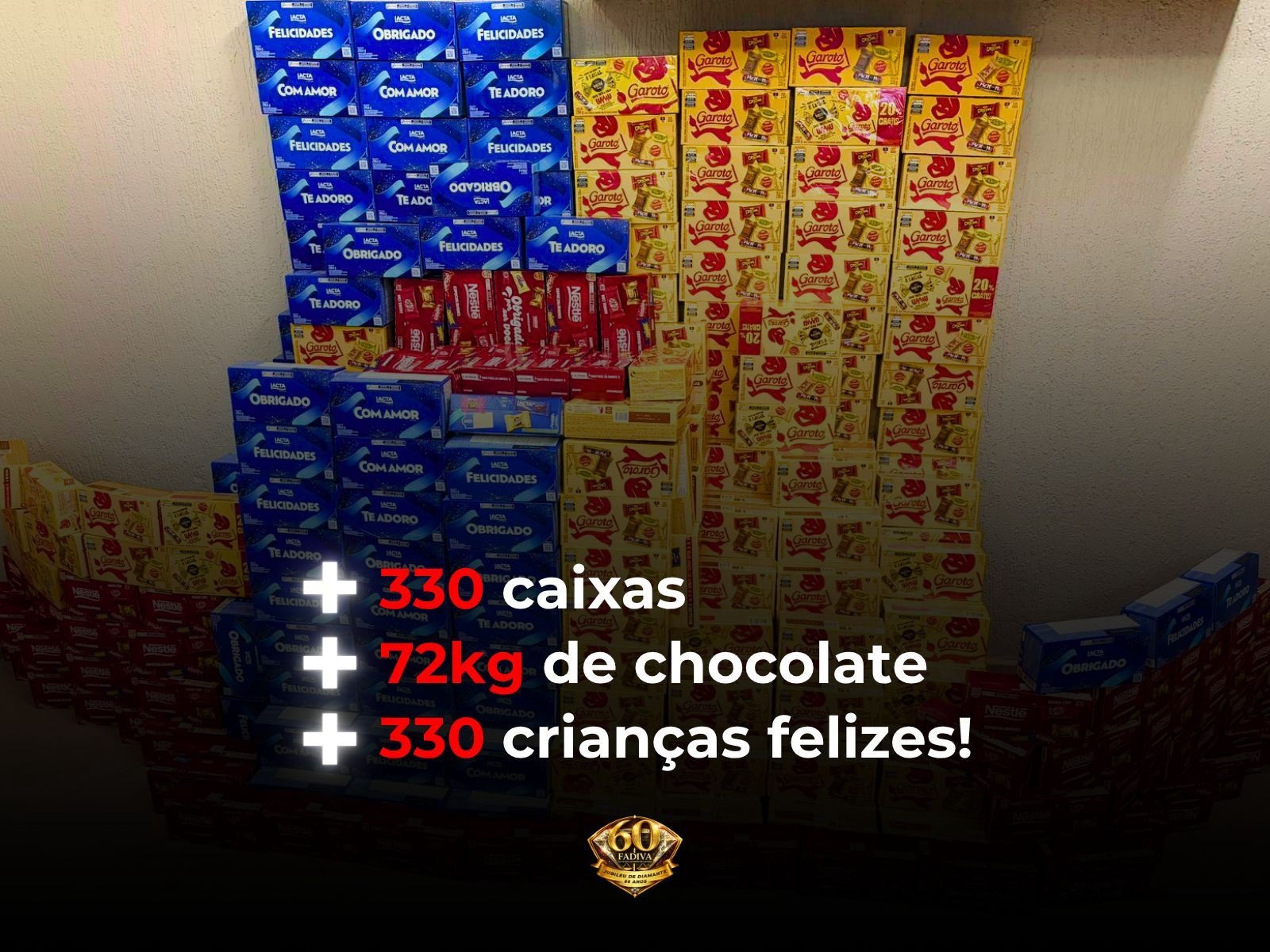 Foram mais de 330 caixas arrecadadas, resultando em 72kg de chocolate e 330 crianças felizes!